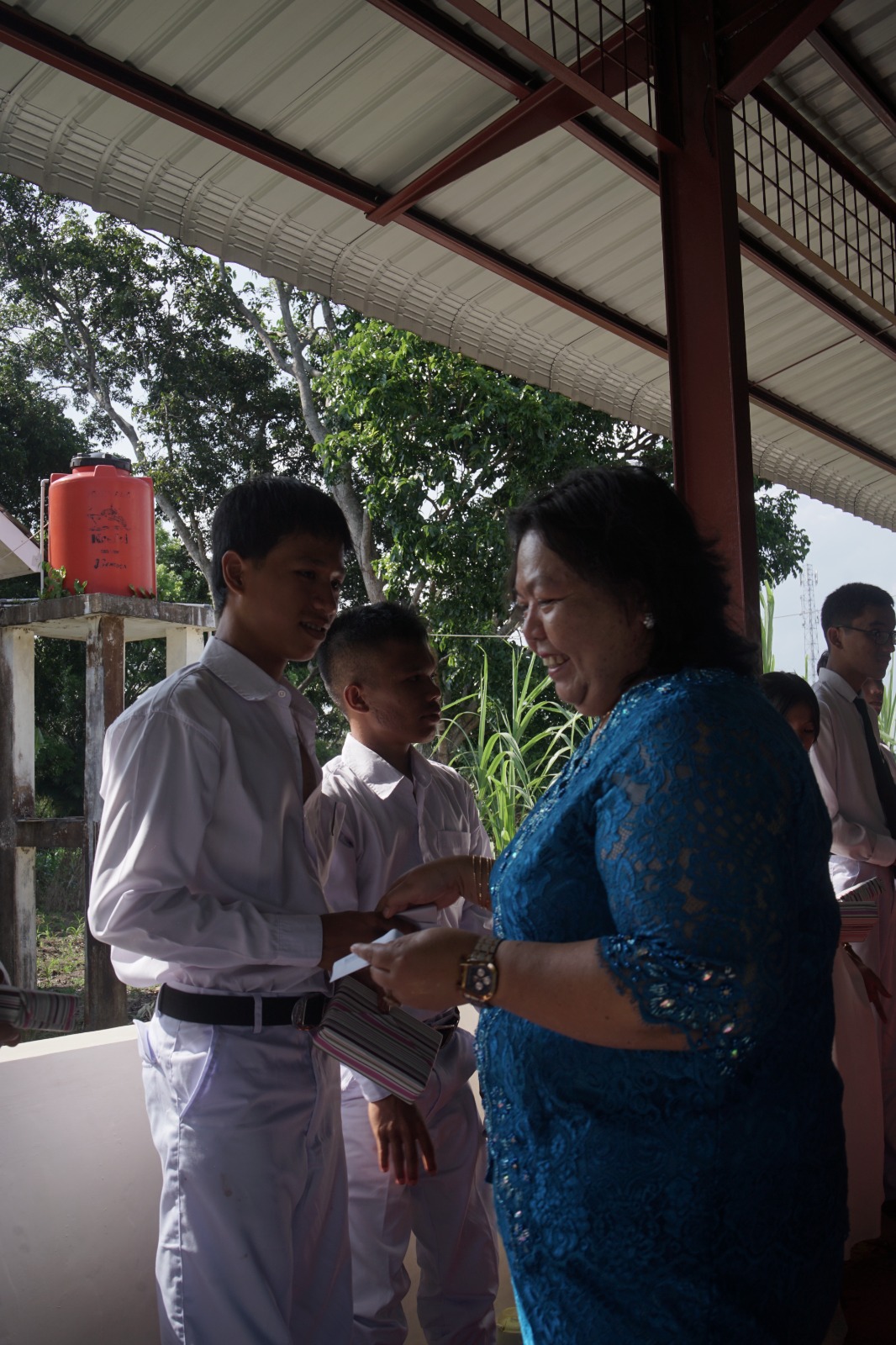 “Sukacita kita hari ini semakin dilengkapi dengan pesan yang disampaikan Paulus, dimana ia mengajak kita untuk tetap hidup di dalam Yesus. Hidup di dalam Yesus berarti hidup yang berakar dan dibangun di atas Dia. Untuk itu saya mengajak anak-anak agar anak-anak tetap bersyukur dan berjuang demi mengapai masa depan serta cita-cita, sebab Tuhan akan mencukupkan segala sesuatunya”, ucap Sekjen GKPS.